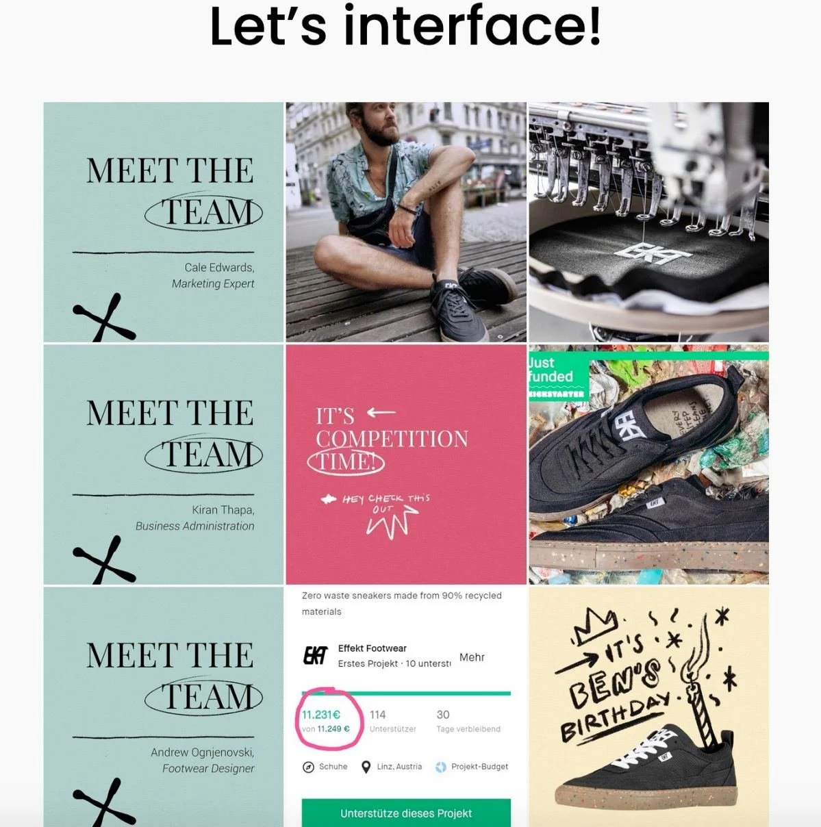Ziele: ~10’000 EUR an Schuhe verkaufen in drei Wochen, eine Community bilden. (Target: Männer 25-50 Jahre alt, sportlich und an Umweltschutz interessiert)